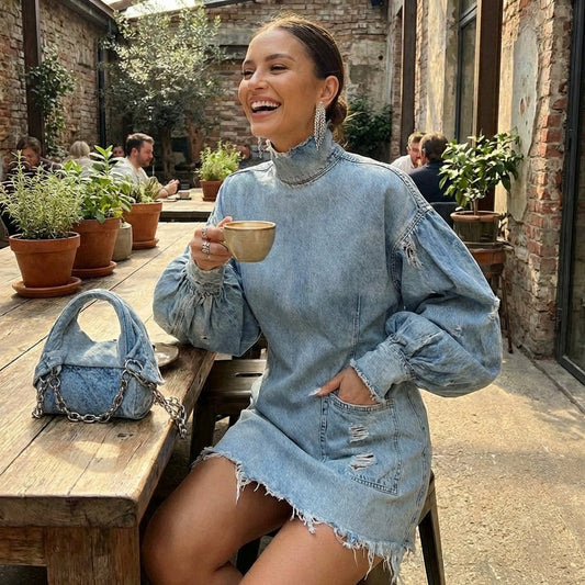 OLYMPUS Vintage Denim High-Neck Dress