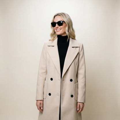 Why choose between style and practicality? The Evelyn coat brings you the best of both worlds! Featuring functional pockets to store your essentials, you can move about with ease and confidence. Whether you have your hands full or just need a safe spot for your keys and phone, our coat ensures you’re always prepared. It's not just about how you look; it's about how you feel, and with this coat, comfort never takes a back seat. Elevate your daily outfits while enjoying the ultimate in convenience.